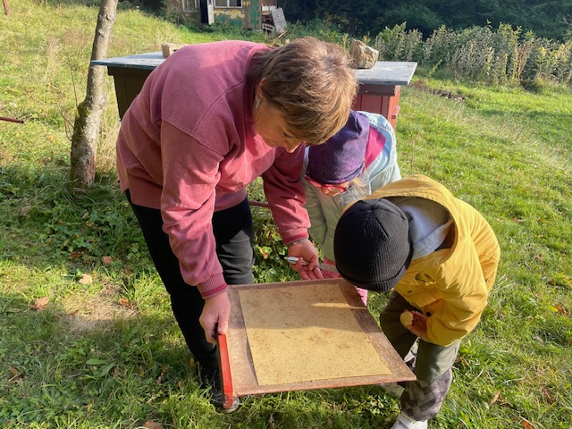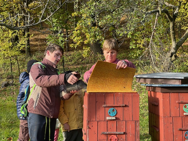 Dne 30.09.2025 na včelnici pod Kozincem, předseda spolku dětem ukázal, jak se léčí včely proti roztoči Varroa destructor pomocí kyseliny mravenčí.